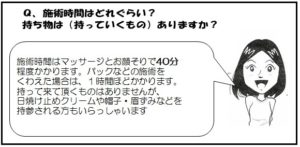 設置し、個室での施術椅子を完備しています。担当の女性スタッフと会話や相談が気楽に