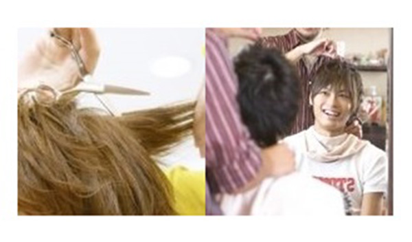 男性フルコースカット ¥4500円(税込) 3本のすきハサミを使い、お客様の髪の毛を矯正しながら、シャンプー後、ドライヤーで乾かすだけで収まるカットをします。 (カット+シャンプー+お顔そり+ドライ)